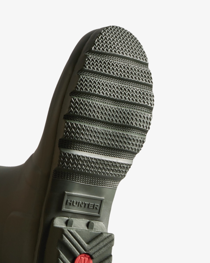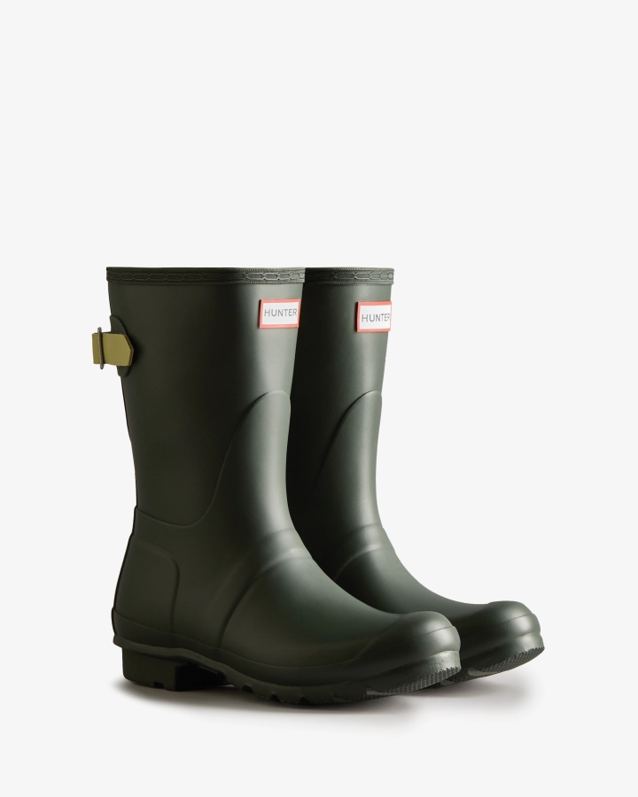 Size/Fit Summary: True to size,Regular fit with back adjustability.Designed for a flexible fit,the Original Short Adjustable Boot mirrors the iconic Original Tall with the addition of an expandable gusset at the back and a shorter leg height. Perfect for a wider calf,these matte boots in a green offer ease of movement,and adjust from the traditional tailored Hunter fit to a more relaxed shape when the contrast gusset is fully extended. Handcrafted from natural rubber and featuring the signature Hunter Original tread,this Original adjustable short boot is fully waterproof and has been updated with a 100% recycled polyester lining and insole.We recommend that all Hunter boots be worn with socks to protect the wearer's skin from contact with rubber.Certified veganWaterproofHandcraftedPolyester liningAdjustable gusset and buckle at back to adjust fitRubber outsole with Original tread patternCrafted from natural vulcanised rubber with matte finish