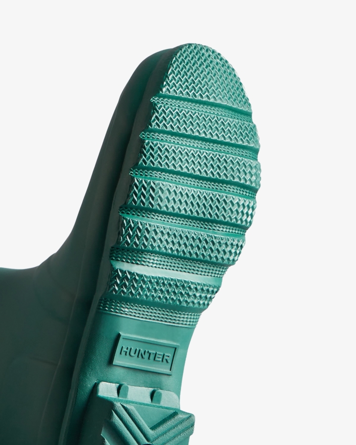 Size/Fit Summary: True to size,Regular fit with back adjustability.Designed for a flexible fit,the Original Tall Adjustable Boot mirrors the iconic Original Tall with the addition of an expandable gusset at the back. Perfect for a wider calf,these matte boots in seasonal green based blue offer ease of movement and adjust from the traditional tailored Hunter fit to a more relaxed shape when the contrast pink gusset is fully extended. Handcrafted from natural rubber,the Original Adjustable boot is fully waterproof with a comfortable polyester lining and the signature Hunter Original tread.We recommend that all Hunter boots be worn with socks to protect the wearer's skin from contact with rubber.Certified veganWaterproofHandcraftedRecycled polyester lining and insoleAdjustable gusset and buckle at back to adjust fitRubber outsole with Original tread patternCrafted from natural vulcanised rubber with matte finish