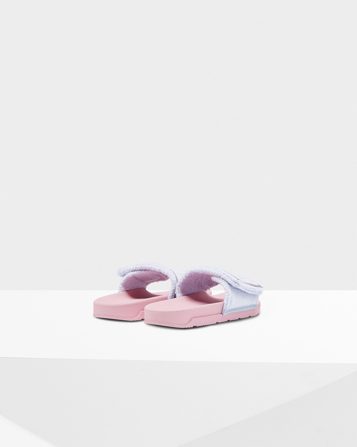 Hunter Women's Terry Towelling Logo Adjustable Slides Arctic Iris Blue-Foxglove Pink
