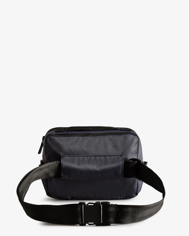This multifunctional Crossbody is designed to be worn three ways ᄄC held by the top handle,across the body or around the waist. The navy bag has a wide zip opening and gussets for easy access to the main compartment. It is made from a highly water-resistant,100% recycled nylon with a recycled polyester water-resistant jacquard lining.Certified vegan100% Recycled water-resistant nylon twill exterior100% Recycled polyester water-resistant lining for extra protectionCan be worn three waysAdjustable straps for ease of wearingInternal and external zip pockets for valuablesHunter PVC labelHeight 14cm,depth 10cm,width 21cm,strap length (when full extended) 130cm