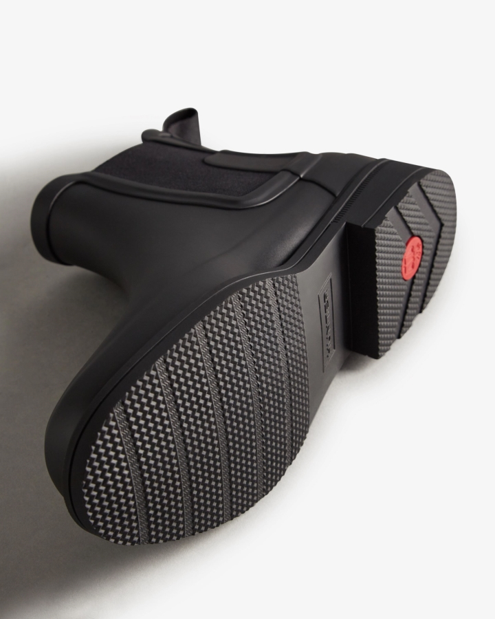 Size/Fit Summary: True to size,Slim fit. If you are in-between sizes or want to wear a thick sock,it is recommended to size up.With a slimmer fit ideal for city-living,the Men's Refined Chelsea features a tailored shape and moulded footbed for everyday wear. A rework of the classic ankle boot, each boot is ready for rain and handcrafted from natural rubber which has been vulcanized for superior protection. Retaining the iconic features of the traditional Chelsea,elasticated gussets and a nylon pull tab make for easy wear. Perfect for everything from city commuting to last minute lunches,this classic black boot is a wet weather essential.We recommend that all Hunter Chelsea boots be worn with Hunter Chelsea socks,which have been technically designed to protect the wearer's skin from contact with rubber in specific areas.WaterproofHandcraftedPolyester liningElastic side gussets and nylon pull-tab for ease of entryRubber outsole with Hunter Original tread patternMoulded footbed for enhanced comfort and supportCrafted from natural vulcanised rubber with matte finish