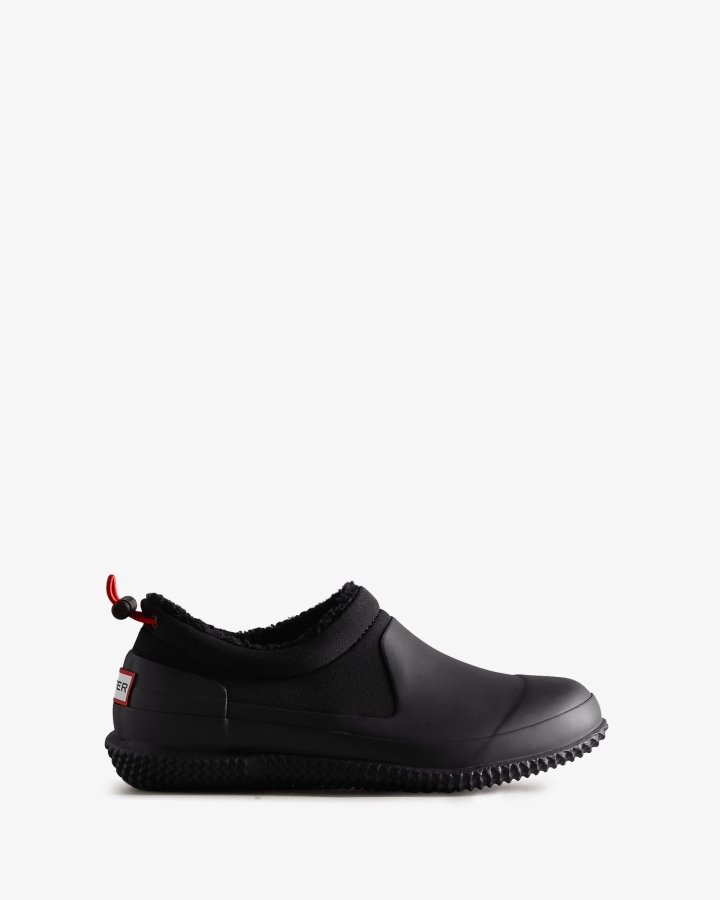 Size/Fit Summary: True to size,Snug fit. If you are in-between sizes or want to wear a thick sock with them,it is recommended to size up.Take on the cold with these warm and snug slipper shoes. Merging two technical materials,the Original Vegan Shearling Shoe is handcrafted from natural rubber and insulating neoprene. A first for Hunter,the new 100% waterproof women's Vegan Shearling Shoe is equipped with a firm grip perfect for slippery winter days. Featuring a draw-cord,Vegan Shearling fleece lining and a thermal insulated sole,they can be worn in temperatures as low as -5��C (23��F). In a stylish black,choose this clog for your next frosty outing or simply as a toasty pair of slippers for cozy nights in.Waterproof outsole and lower rubber panelsHandcraftedVegan Shearling lining helps wick away moistureAdded thermal insulation insoleOrtholite footbedHunter branded hardwareDraw-cord for a more tailored fitCan be worn in temperatures as low as -5��C (23��F)