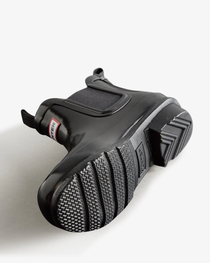 Hunter Big Kids (5-11 Years) Gloss Chelsea Boots Black