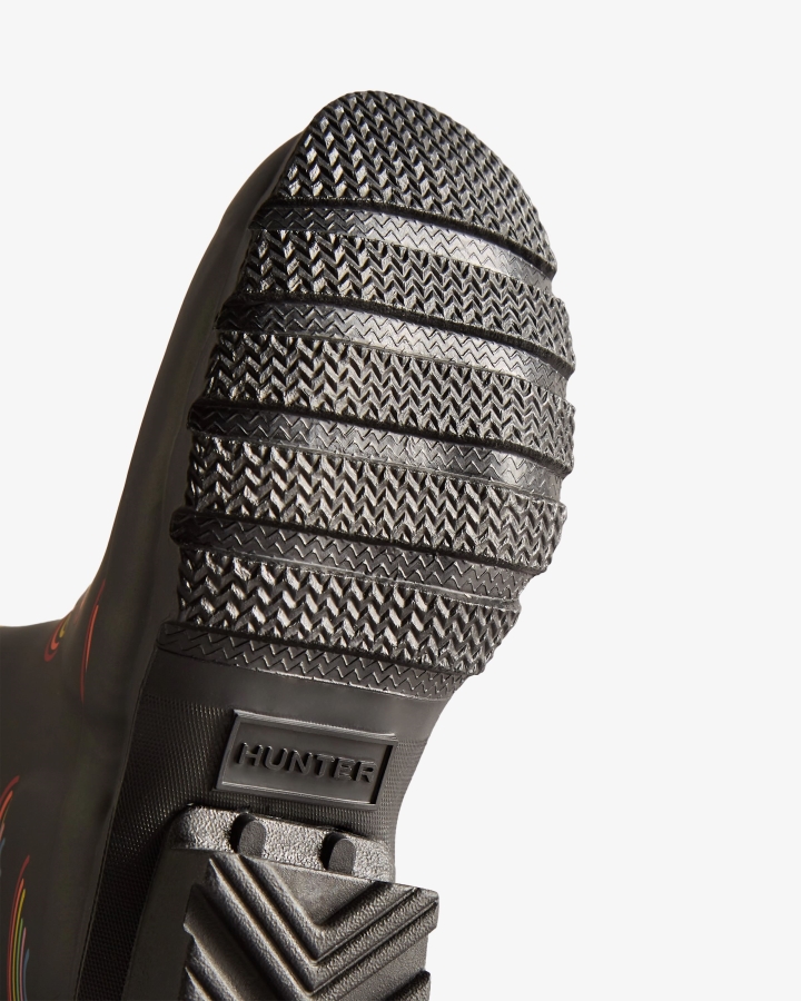 Size/Fit Summary: True to size,Regular fit. Sizing suitable for 5-11 year olds (size 13-5).Featuring a playful mini rainbow,the Big Kids Original Boot is a mini version of the iconic Original Tall Boot,handcrafted from natural rubber. Designed for adventures,our specialised kids wellies are highly resistant to wear and abrasion with a recycled polyester lining and insole for comfort. Reflective patches and the Hunter Original tread offer added safety.We recommend that all Hunter boots be worn with socks to protect the wearer's skin from contact with rubber.Certified veganWaterproofHandcraftedRecycled polyester lining and insoleRubber outsole with Hunter Original tread patternReflective patches for increased visibilityCrafted from natural vulcanised rubber with matte finishSeasonal print