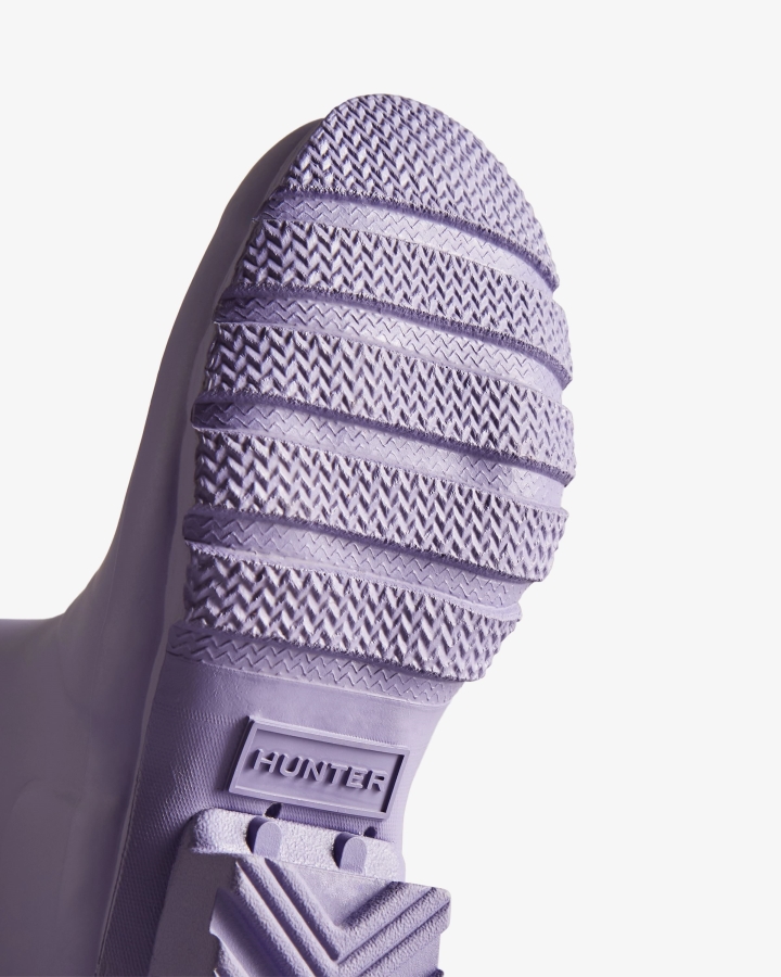 Size/Fit Summary: True to size,Regular fit. Sizing suitable for 5-11 year olds (size 13-6).A mini version of the iconic Original Tall Boot,the Original Kids Rain Boot is a dream for junior explorers. This seasonal purple waterproof boot is handcrafted from natural rubber. Designed for adventures,our specialised kids boots are highly resistant to wear and abrasion with an updated 100% recycled polyester lining and insole for comfort. Reflective patches and the Hunter Original tread offer added safety so you can be confident letting them take on the elements whatever the weather.We recommend that all Hunter boots be worn with socks to protect the wearer's skin from contact with rubber.Certified veganWaterproofHandcraftedRecycled polyester lining and insoleReflective patches for increased visibilityRubber outsole with Hunter Original tread patternCrafted from natural vulcanised Rubber with matte finish
