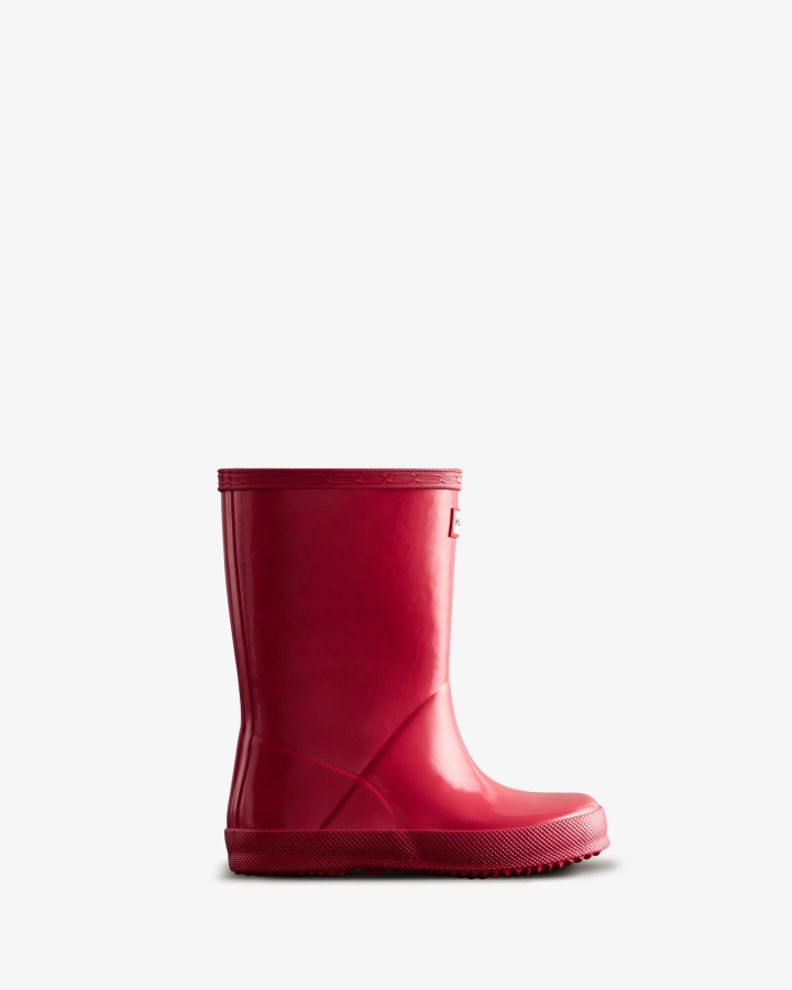 Size/Fit Summary: Fits slightly smaller,Regular fit. Sizing suitable for 18 months to 8 years old (size 5-2). If they are in-between sizes,it is recommended to size up.The Kids First Classic Gloss Rain Boot is perfect for puddle splashing. Handcrafted from natural rubber,the flat sole and rounded toe give little feet room to move and the updated 100% recycled polyester lining ensures complete comfort for every adventure. These kids pink rain boots are fully waterproof and feature a specially-developed tread to reduce slipping.We recommend that all Hunter boots be worn with socks to protect the wearer's skin from contact with rubber.Certified veganWaterproofHandcraftedRecycled polyester lining and insoleRubber outsole with Original Kids tread patternCrafted from natural vulcanised rubber with gloss finish