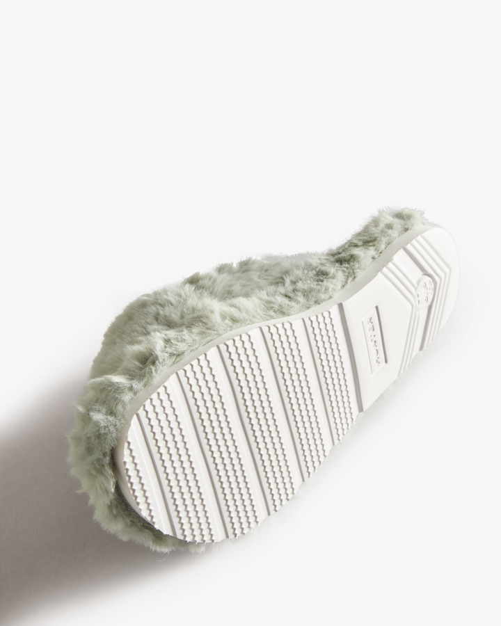 Hunter Women's Faux Fur Flatform Crossover Slide Sweet Gale Green