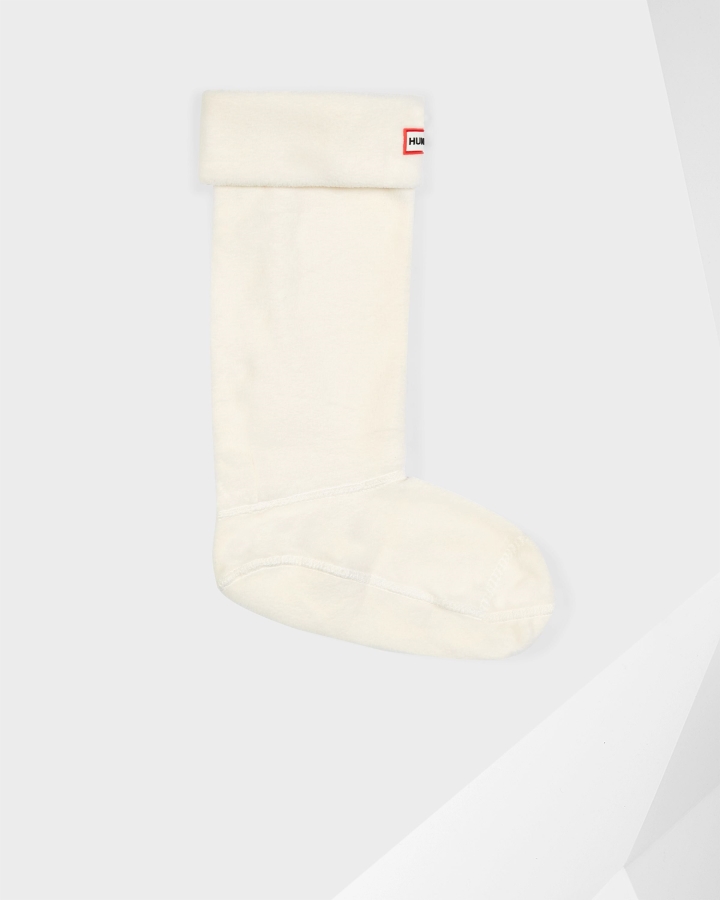 Size/Fit Summary: Sizes run slightly large ᄄC we recommend the following sizing for wearing with your Original Tall Hunter Boots. Size M = US Women's Size 5-8. Size L = US Women's Size 9-11,US Men's Size 8-10. Size XL = US Men's Size 11-13.Add a personal touch to your Hunter Boots with these warm and snug boot socks. Designed to fit comfortably inside the Original Tall Rain Boot Boot and enhance fit while adding comfort and warmth,these boot socks feature a Hunter white fleece fold down cuff finished with the Hunter Original logo.100% Polyester fleeceFold down cuffDesigned to fit the Original Tall Rain BootPVC logo branding