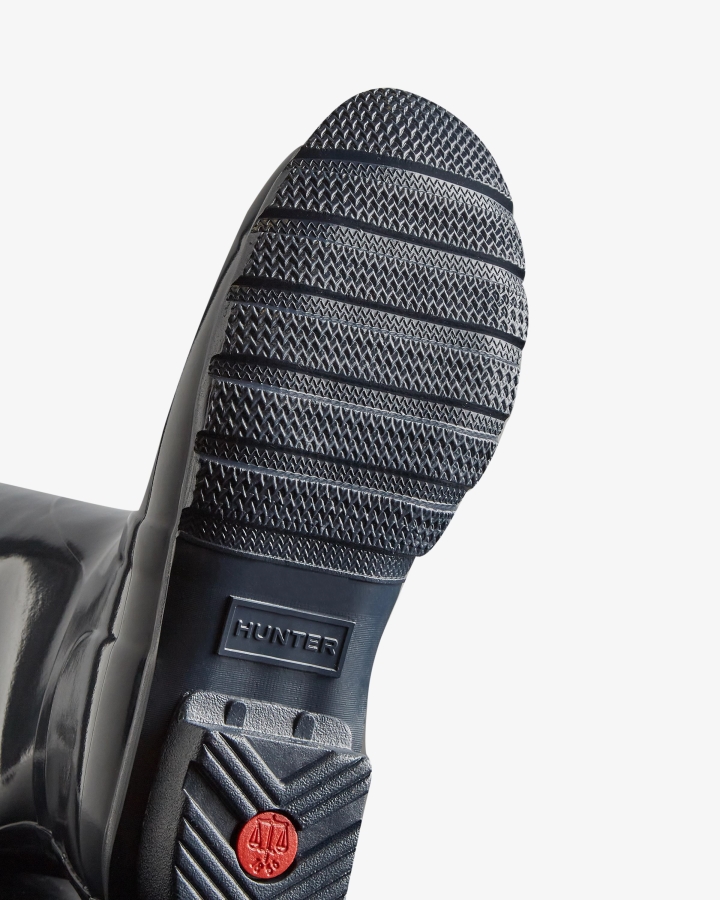 Size/Fit Summary: True to size,Regular fit. If you are in-between sizes,have a wider calf or want to wear a thick sock,it is recommended to size up.Perfect for wet weather conditions,this women's Rain Boot Boot has been at the heart of the Hunter Original brand since its introduction in 1956. Formed of natural rubber,each pair is made from 28 hand-cut parts and assembled over three days on an aluminium last bespoke to Hunter,before being vulcanized for superior protection. Featuring the Hunter Original tread pattern,and a comfortable polyester lining,this classic glossy navy waterproof boot is a rainy-day necessity.We recommend that all Hunter boots be worn with socks to protect the wearer's skin from contact with rubber. All Hunter Boot Socks are specially designed for use with our boot range and feature a fold over top to cover the rubber and nylon boot edge,preventing any rubbing associated with wear.WaterproofHandcrafted from 28 partsPolyester liningRubber outsole with Hunter Original tread patternCrafted from natural vulcanised rubber with gloss finish