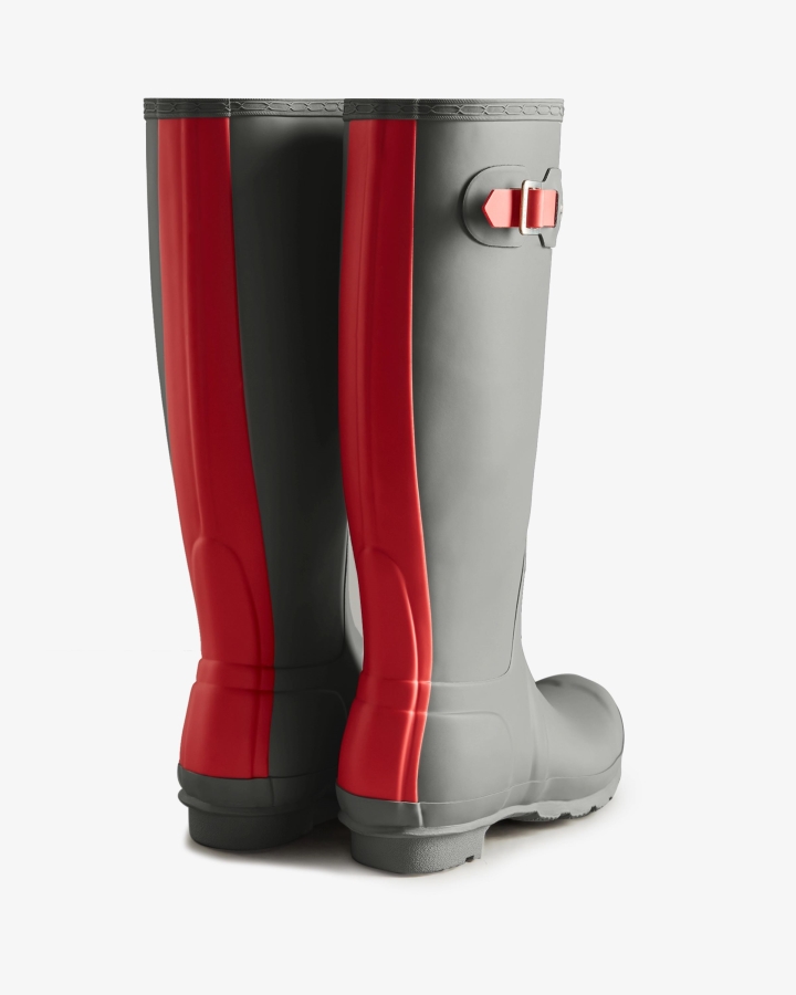 Hunter Women's Tall Insulated Rain Boots Tundra Grey-Red Chill