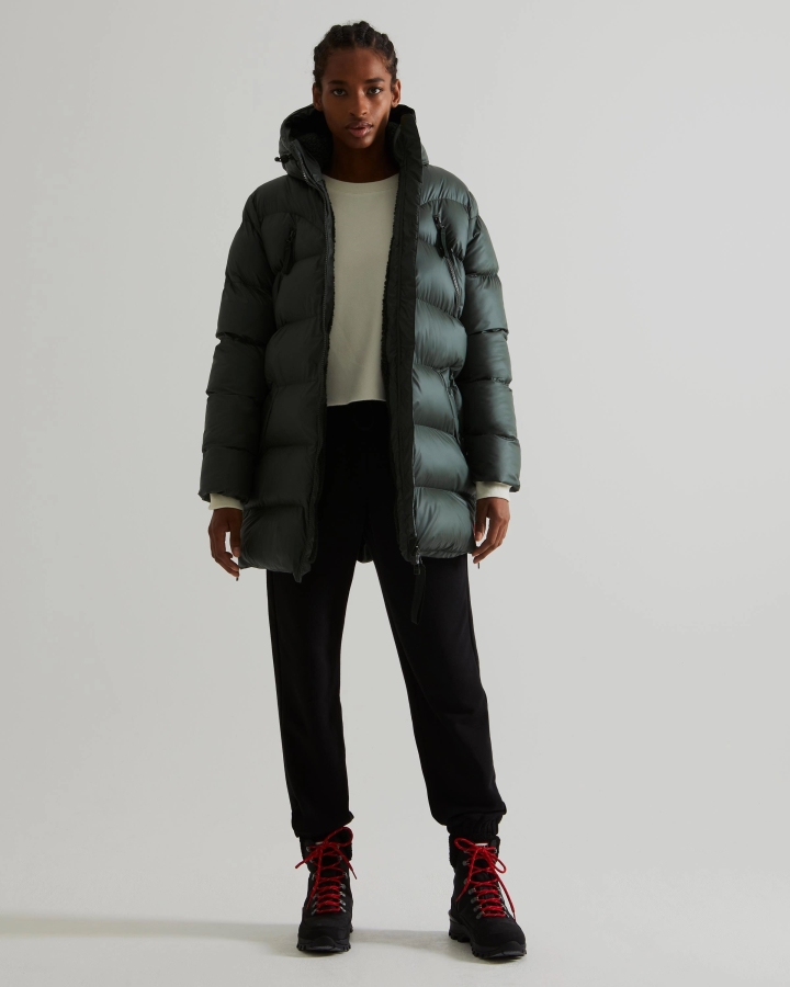 Size/Fit Summary: True to size,Regular fit. Slimmer fit on arms. Model is 176cm / 5' 9?" and is wearing a size S. Centre back measurement for Size S is 30.7" (78cm) and sleeve length from shoulder point is 24.8" (63cm).Note: This Puffer Jacket has been fully padded for optimum warmth,so it may retain a stiffer shape on some figures.We've made two tweaks to our bestselling vegan Women's Rubberized Puffer Jacket to make it even more sustainable. The soft,padded insulation is made from upcycled recycled plastic bottles and the lining is crafted from recycled polyester. With a water-repellent rubberized shell,this deep green jacket will keep you warm in temperatures as low as -25��C (-13��F).Certified veganWater-resistantShell fabric has a light polyurethane coating for a rubber touch feelHighly insulated using eco-friendly filling made from recycled plastic bottlesFleece lined hood for added warmthFront dome and zip pockets with knuckle side liners for added warmthCentre front Hunter branded zipInternal chest pocket with zip closureConcealed elasticated gaiter on cuffs for added warmthBungee drawcords at waist and hood for adjustabilitySide zips for added ventilationCan be worn in temperatures as low as -25��C (-13��F)